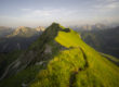 Die letzten Momente der magischen Lichtstimmung genießen wir in vollkommener Stille und außergewöhnlich warmen Temperaturen auf der letzten Anhöhe vor dem Übergang zum Hohen Brett.